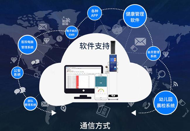 此外,除了人臉識別進行身份識別外,該設備還可以選擇刷身份證、刷社保卡、刷IC卡、刷兒童手環、掃條形碼、掃二維碼、手動輸入等方式進行身份識別,與此同時,身份信息和測量結果可通過多種方式(如:RS-232串口、藍牙、WIFI、4G、云傳輸等)將測量數據上傳到各種電腦、平臺、系統、服務器、APP中,真正實現了傻瓜式操作、精準式測量、智能化通信。