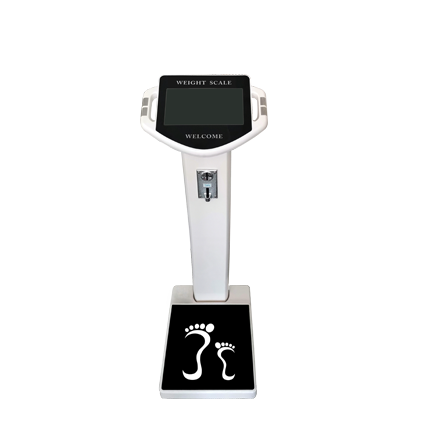 SH-100T智能投幣體重體脂秤小巧便攜美觀,可測量體重、脂肪人體成分等10余項健康指標,可自由設置投幣個數,支持多國語音播報,廣泛適用于商場、藥店、診所、健身房、機場等場所。